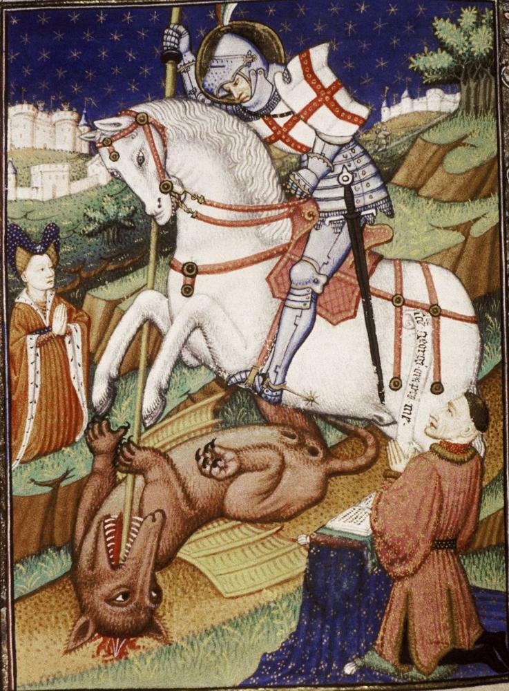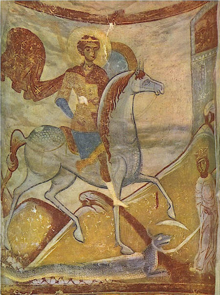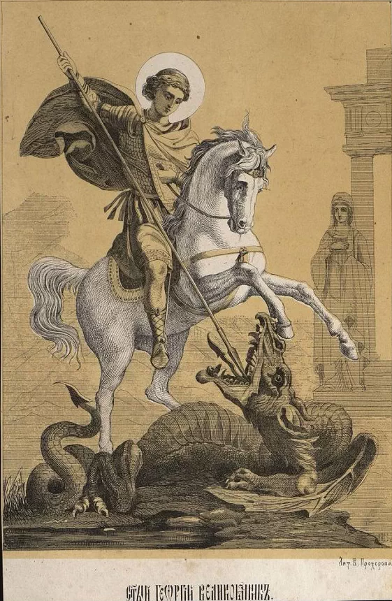 У Осириса и Исиды был сын древнеегипетский бог Гор. Который отомстил за своего отца- он сразился с богом Сетом. На древнеегипетском рельефе: бог Солнца Гор с головой сокола поражает демона Сета в образе крокодила. При раскопках найдены амулеты зверинного стиля, очень похожи на рельефы из древнего Египта. Так же этот символ является современным символом города Москва.