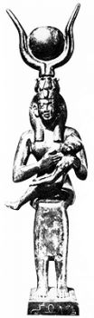 На голове у Исиды мы видим Солнечный диск с рогатой Луной, или с диском, расположенным между рогов коровы. Рогатая Луна является, главным образом, символом Великой Матери, лунной Царицы Небес, и является атрибутом всех лунных божеств. У христиан полумесяц - знак Девы Марии, Царицы Небесной. А на куполах церквей до 19 века были не православные кресты, а солнце с полумесяцем в нижней части.