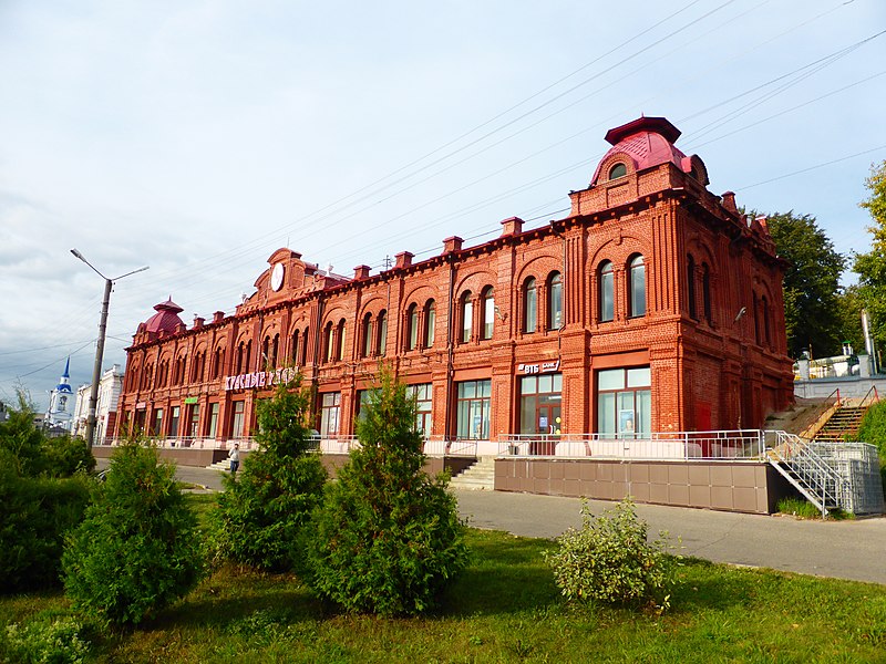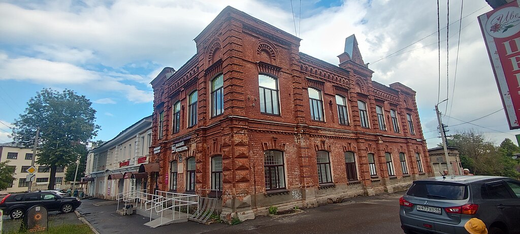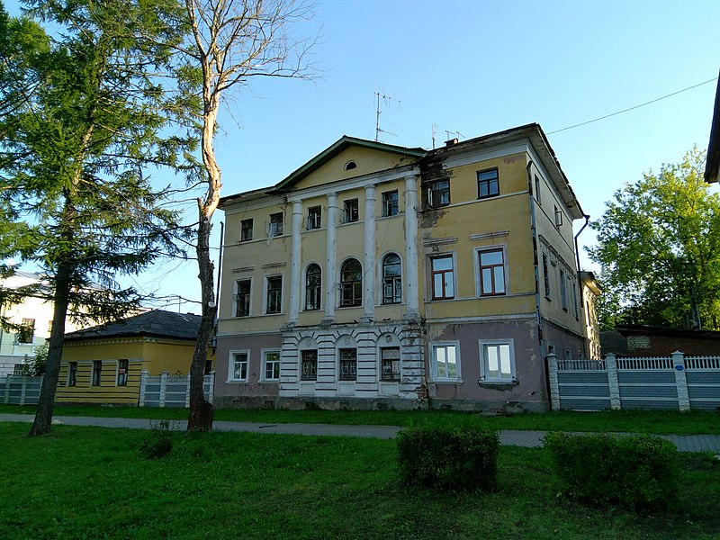 Описание: 1 треть ХIХ в. Памятник архитектуры регионального значения.[8][9] Здание, в котором с 15 февраля по 1 марта 1907 г. находился первый Кинешемский Совет рабочих депутатов (хлебная комиссия).